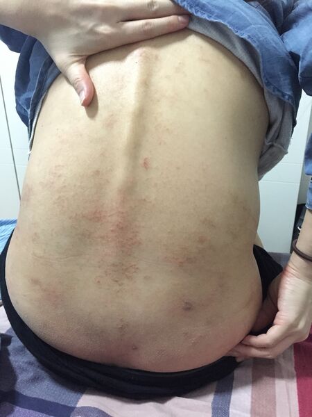 過敏的部位都是一塊一塊的深色乾癬,不是女孩的皮膚呀...