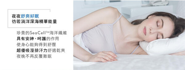 原來SeaCellTM海洋纖維具有安神的作用呀!那舒適乾爽睡起來真的很舒服呢~!