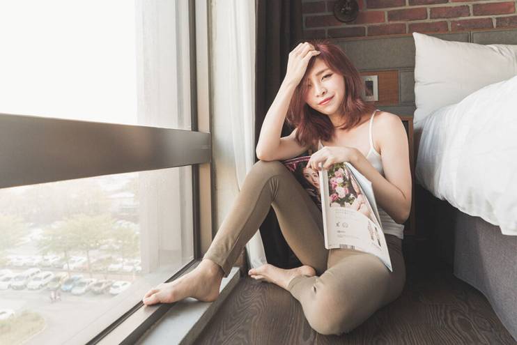 穿著柔軟的內搭褲,悠閒的看書或做簡單的伸展運動