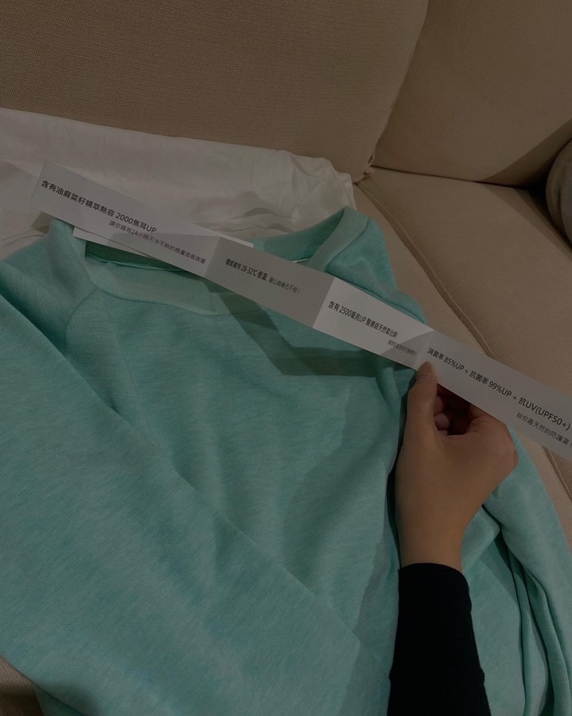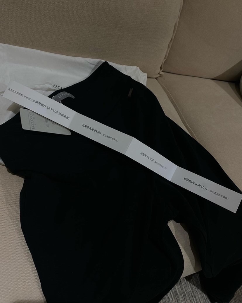 ESCURA強調他們的衣服具有天然抗菌、胺基酸美膚、智慧控溫,機能織進布料中,所以不會因為重複清洗失去功效。