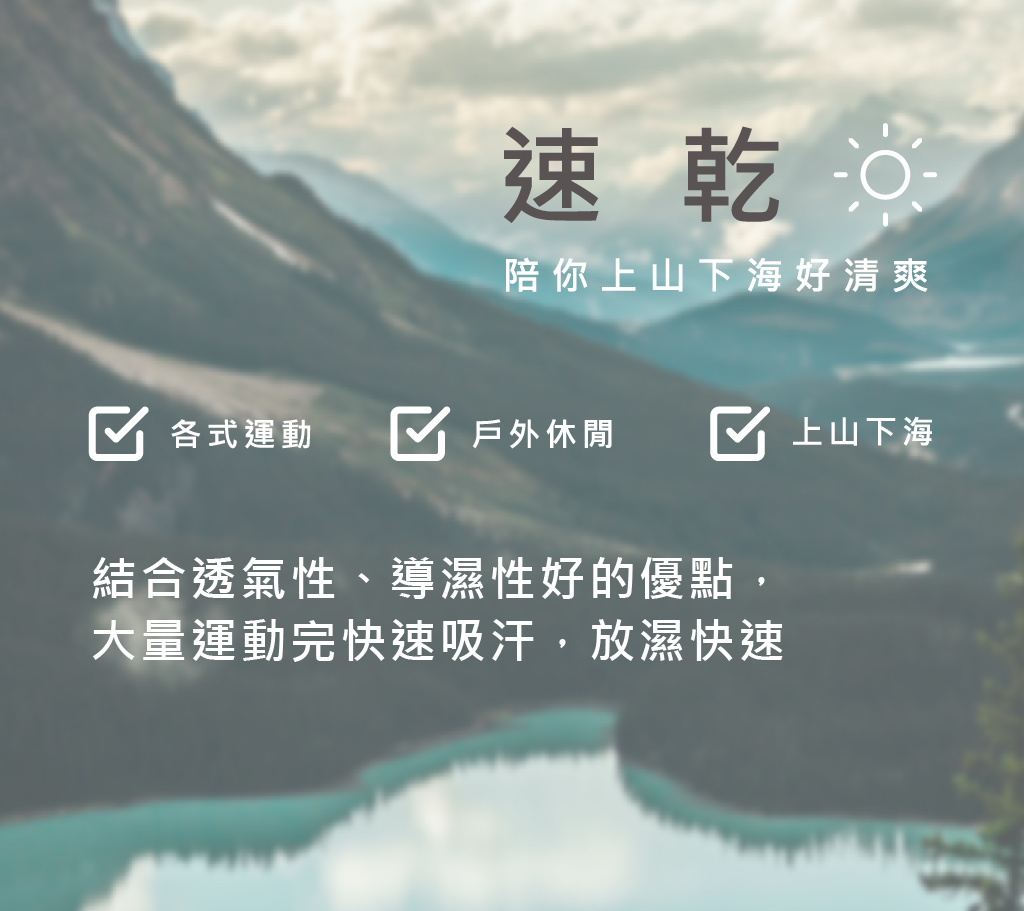大量運動完快速吸汗,放濕快速,