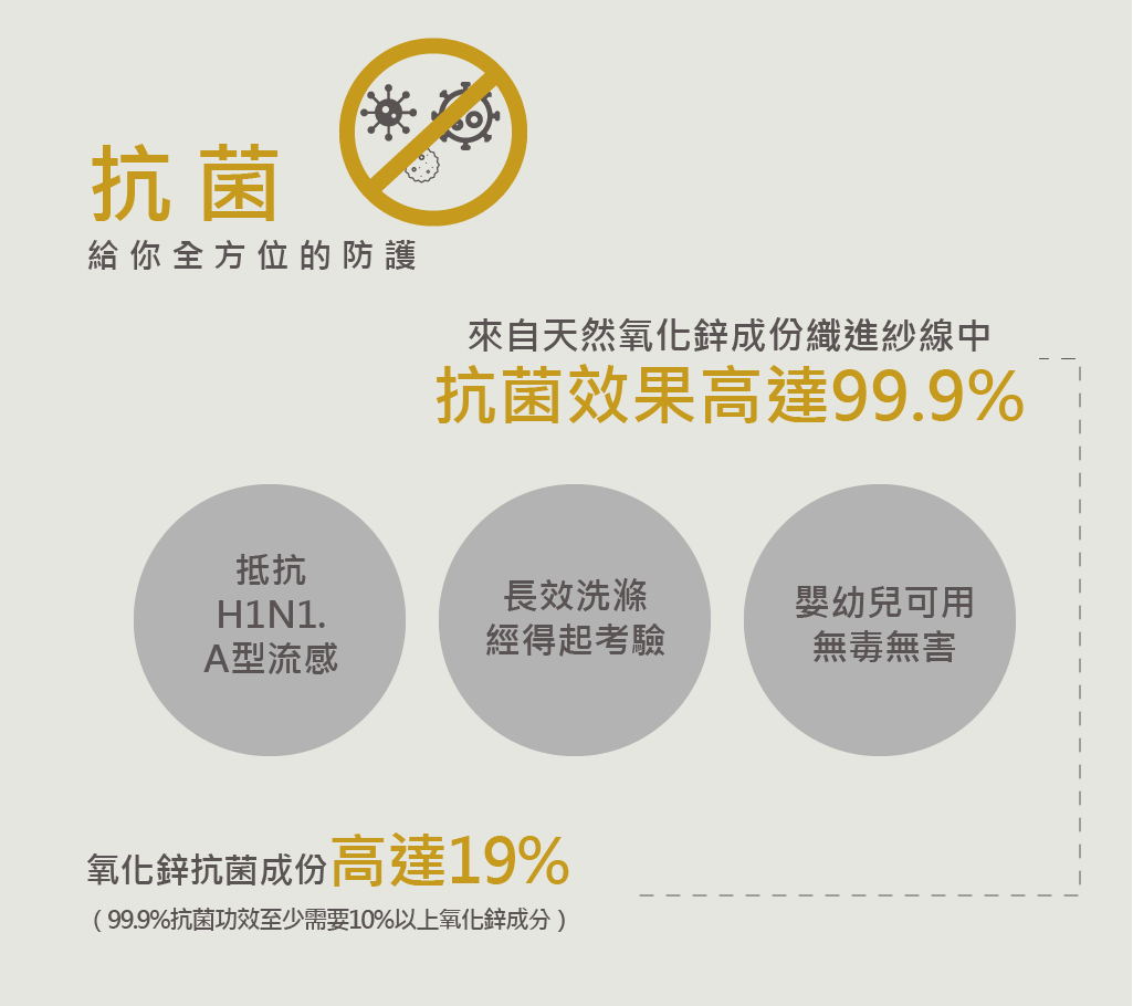(99.9%抗菌功效需要10%以上氧化鋅成分)