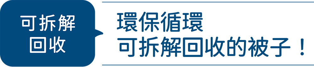 五層結構每一層都堅持做到最大效能及環保製程,成為全世界第一件可拆解回收的被子!