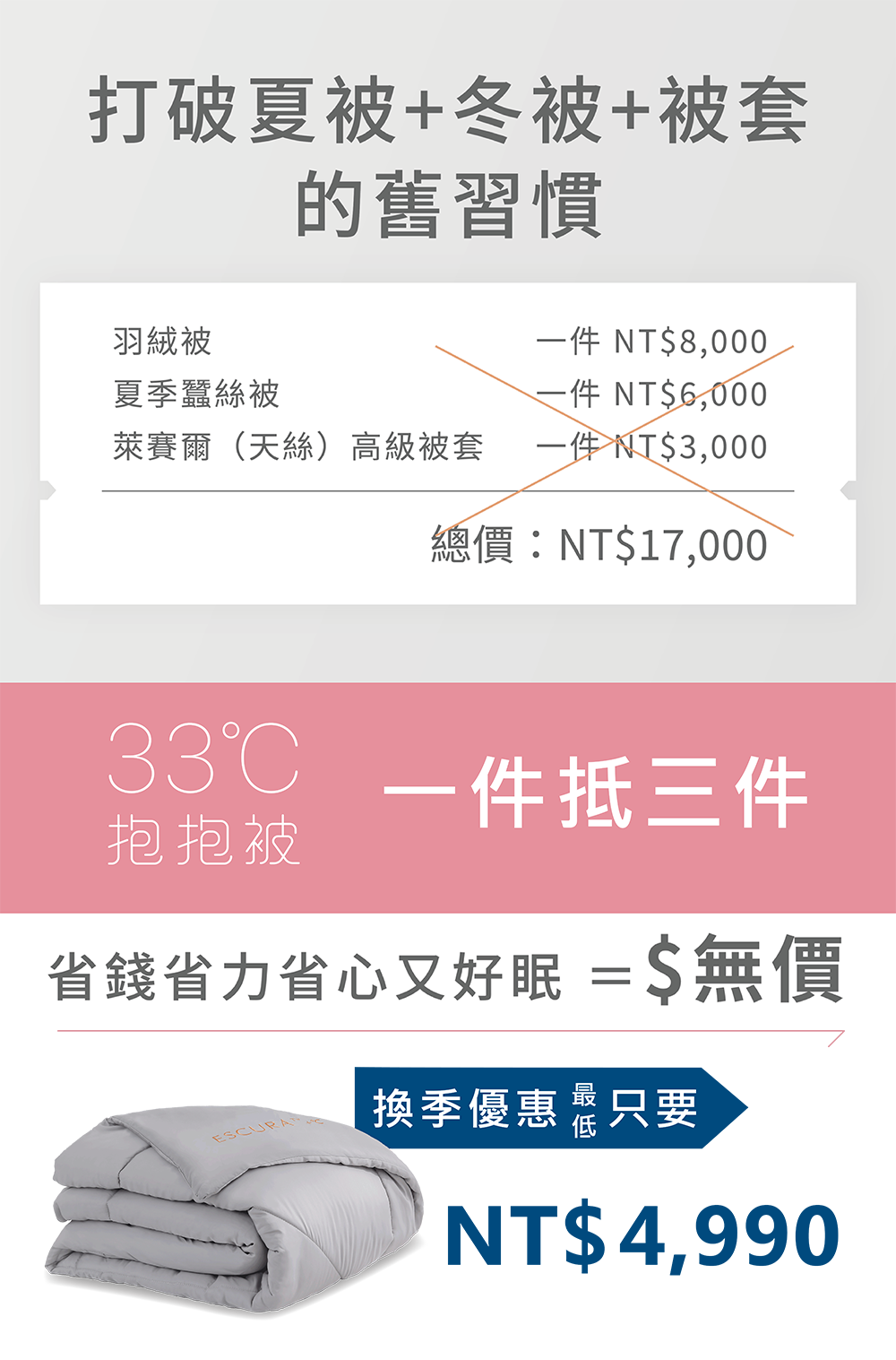 羽絨被、遠紅外線被、石墨烯被只適合寒流來的那幾天,多數的冬天蓋到半夜流汗。
