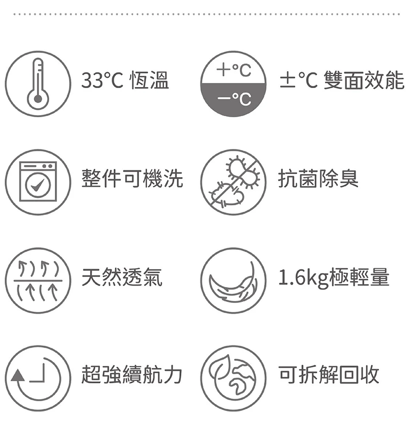 進被窩瞬間不再瑟瑟發抖,維持 33℃ 恆溫傳導,進被窩成為每日最期待的瞬間~