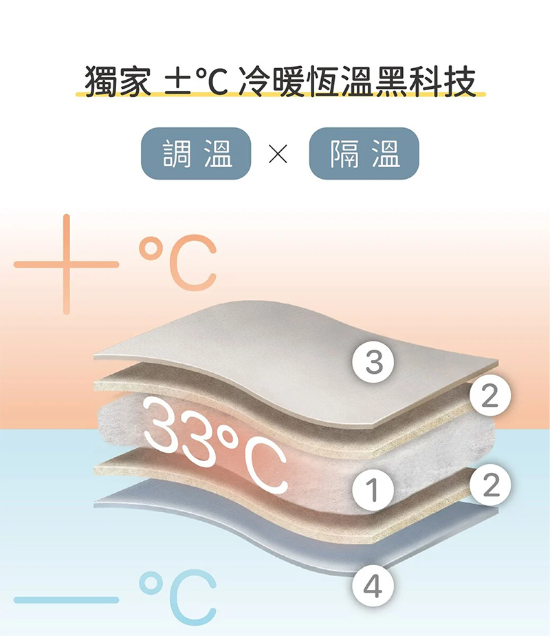 經實驗證實最高標準蓄熱容量 33℃ 續航力超持久,再也不怕半夜忽冷忽熱