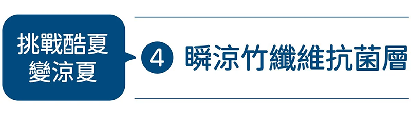 ●夏天 -℃ 表布 / 瞬涼儐絲緞面觸感,天然竹纖維本身自帶抗菌除臭功效,有效避免先天流汗滋生細菌和味道 / SGS 檢測結果滅菌率達 99.9%;消臭力 94.4% 以上!