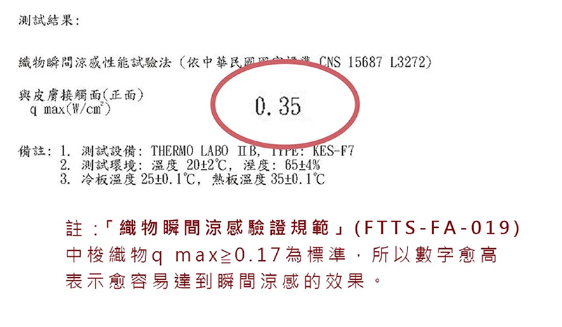 於是我們選用具有天然透氣及抗菌除臭的竹纖維,Q-MAX值高達0.35!