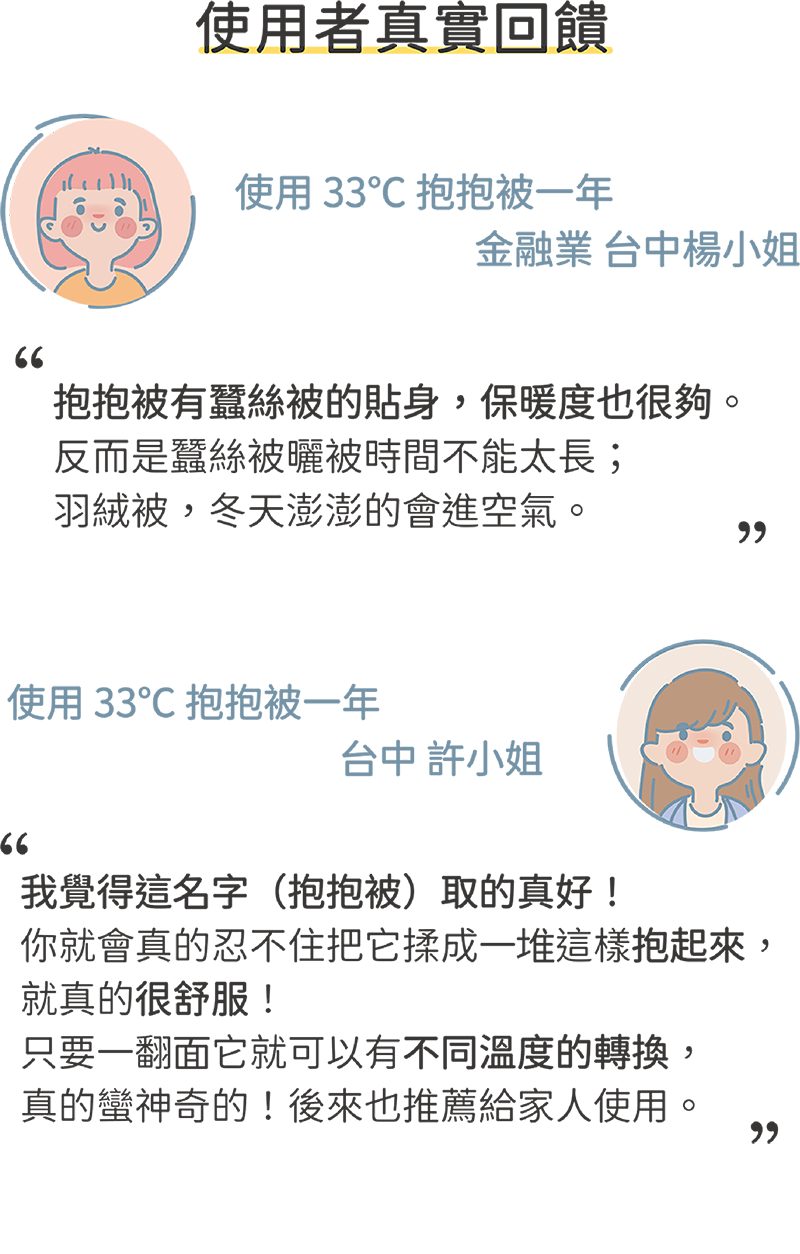 開發出一款能隨著我們身體溫度變化,懂得適時吸熱、放熱的 【 33℃抱抱被 】。