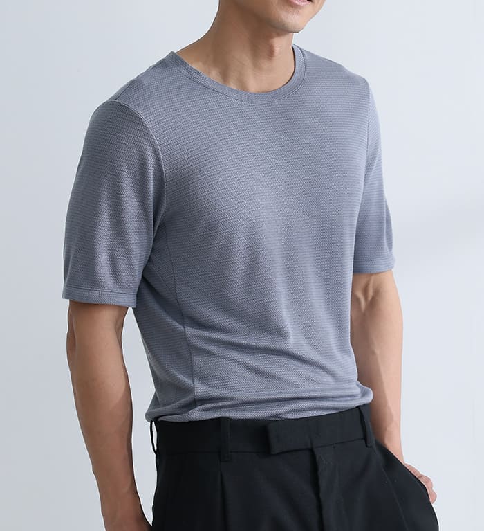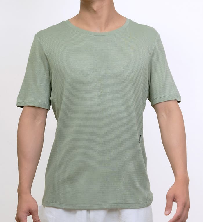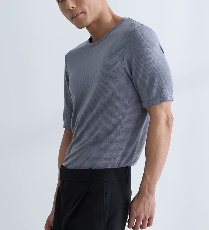 這是一種特殊的織法,能在布料上創造緻密的凹凸氣孔。它有兩大好處:1. 高效隔熱,形成恆溫微氣層,加強 PCM 的調溫效率。 2. 快速排濕,汗水會從內層吸收、外層擴散,保持身體乾爽不黏膩。