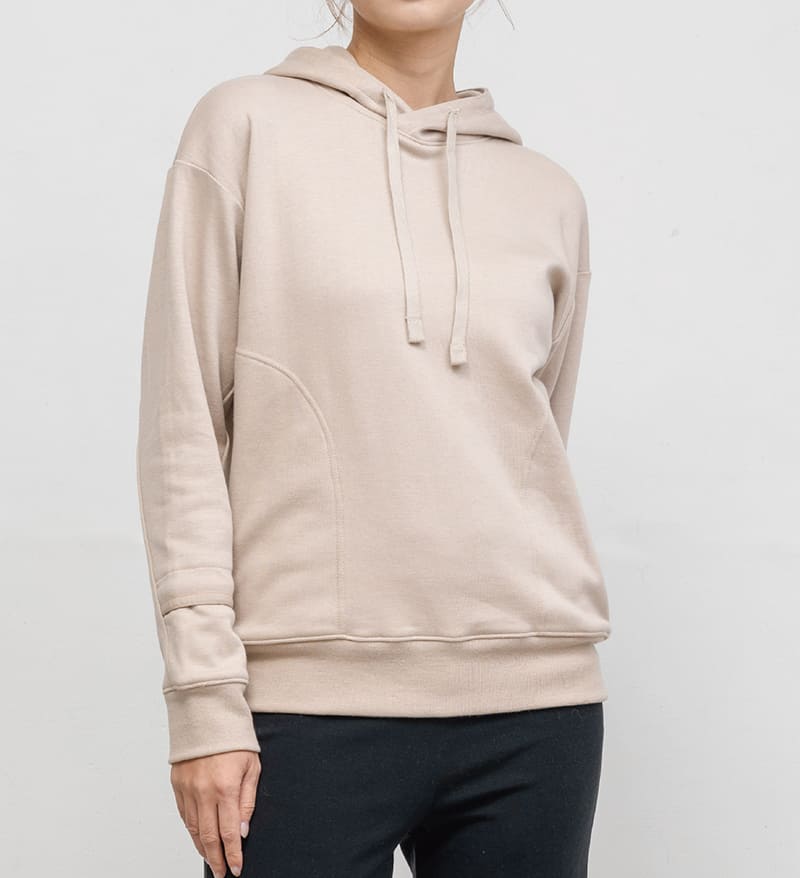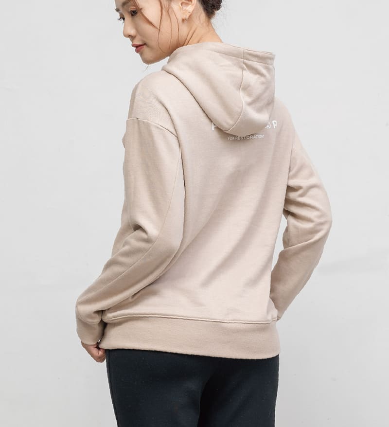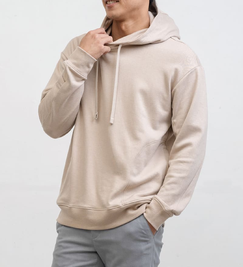 這款帽T使用63%奧地利進口天絲(TENCEL™ Lyocell),這種材質原本只用於高級寢具,其回潮率高達13%,比棉高6成,是聚酯纖維的27倍,讓肌膚24小時維持保濕。天絲的柔滑特性,也讓衣物有絕佳的垂墜感,修身而不臃腫。