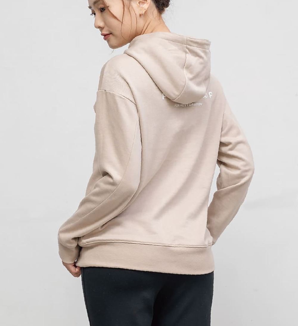 這款帽T使用63%奧地利進口天絲(TENCEL™ Lyocell),這種材質原本只用於高級寢具,其回潮率高達13%,比棉高6成,是聚酯纖維的27倍,讓肌膚24小時維持保濕。天絲的柔滑特性,也讓衣物有絕佳的垂墜感,修身而不臃腫。